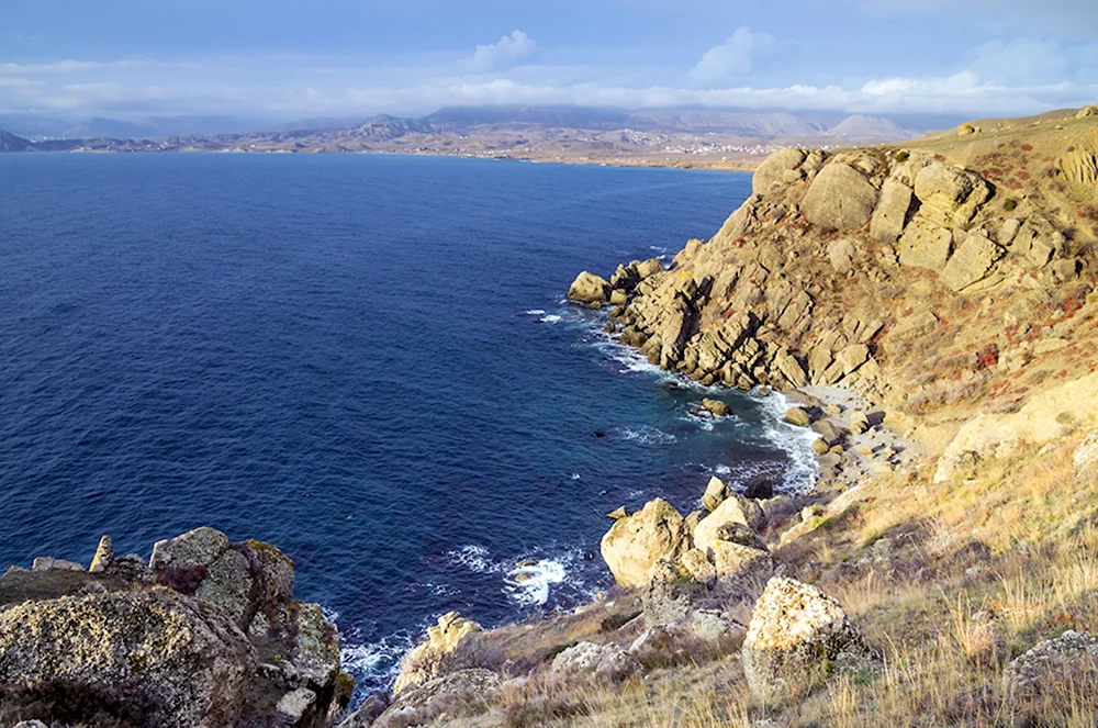 Бухта Бугаз Крым Прекрасная Бухта Бугаз в Крыму - это настоящий рай для глаз! Сочетание голубого моря, золотистого песка и красивой природы создает невероятно впечатляющую панораму. Просто великолепно!