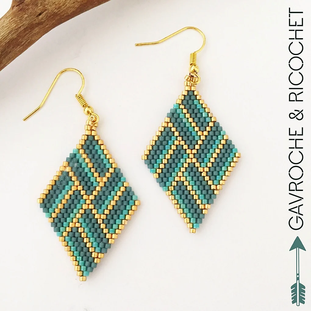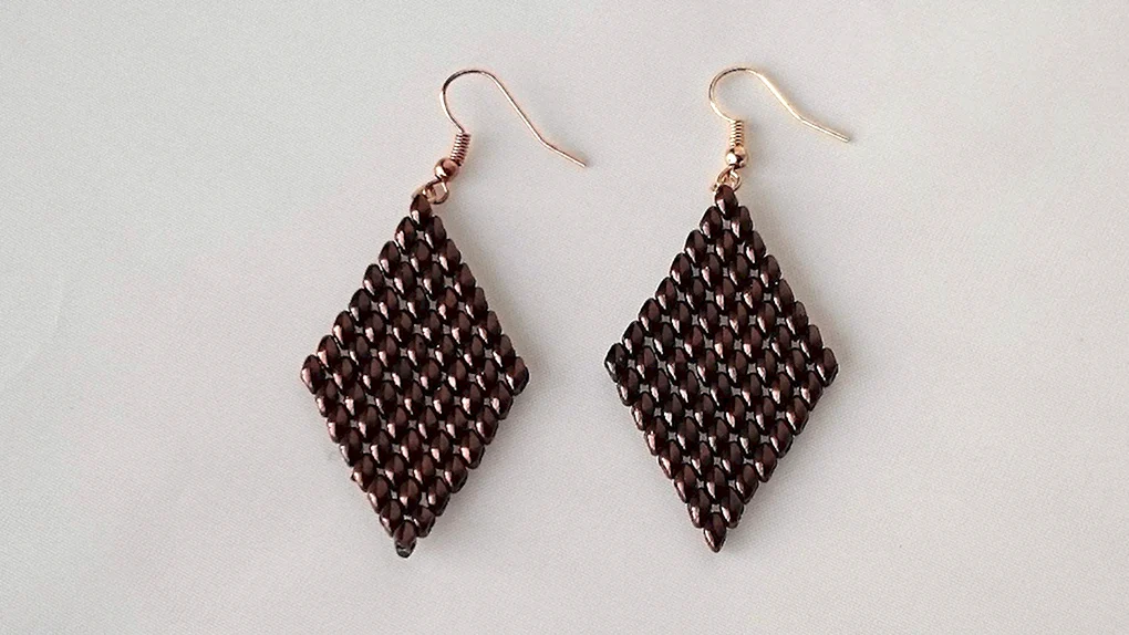 Серьги ромбы из бисера МК