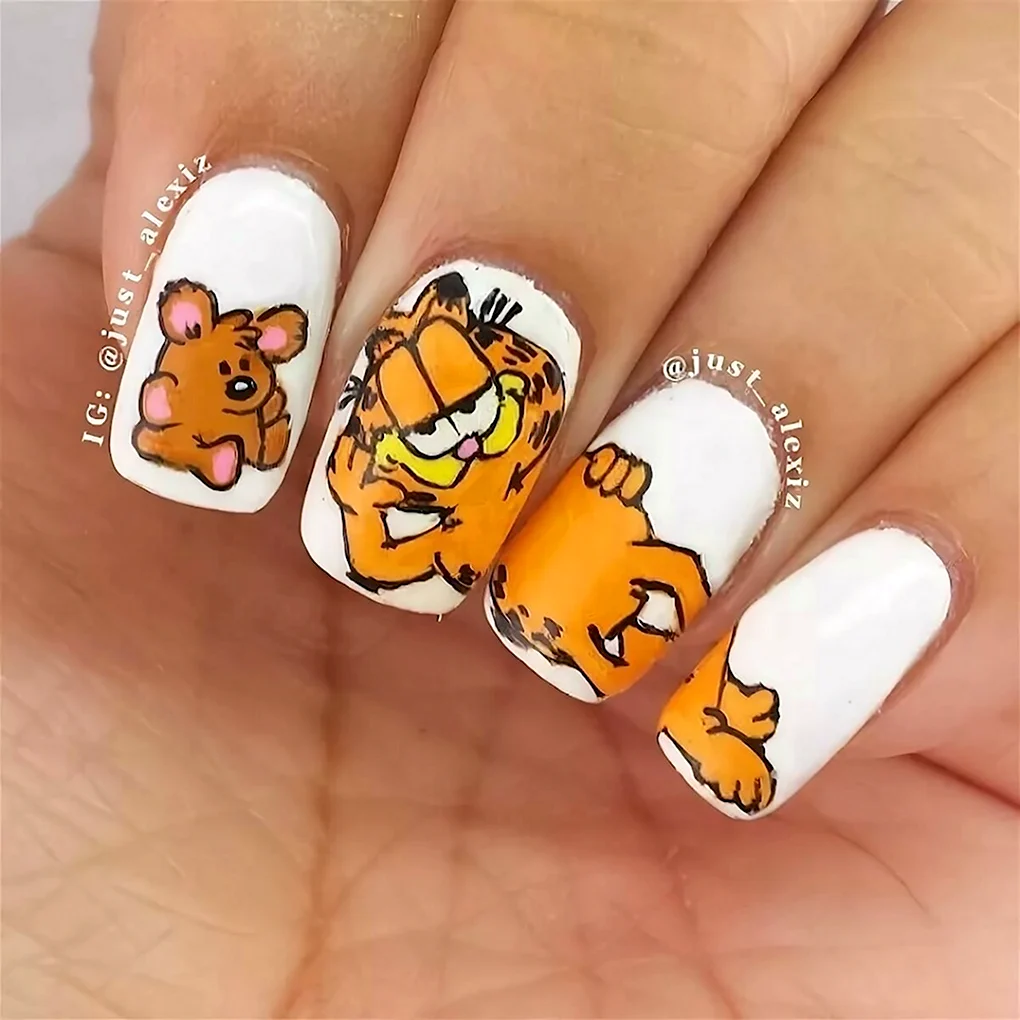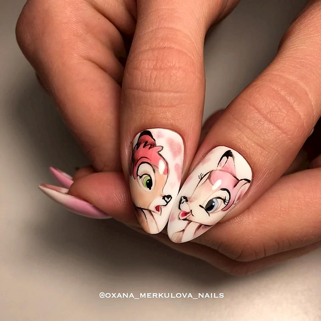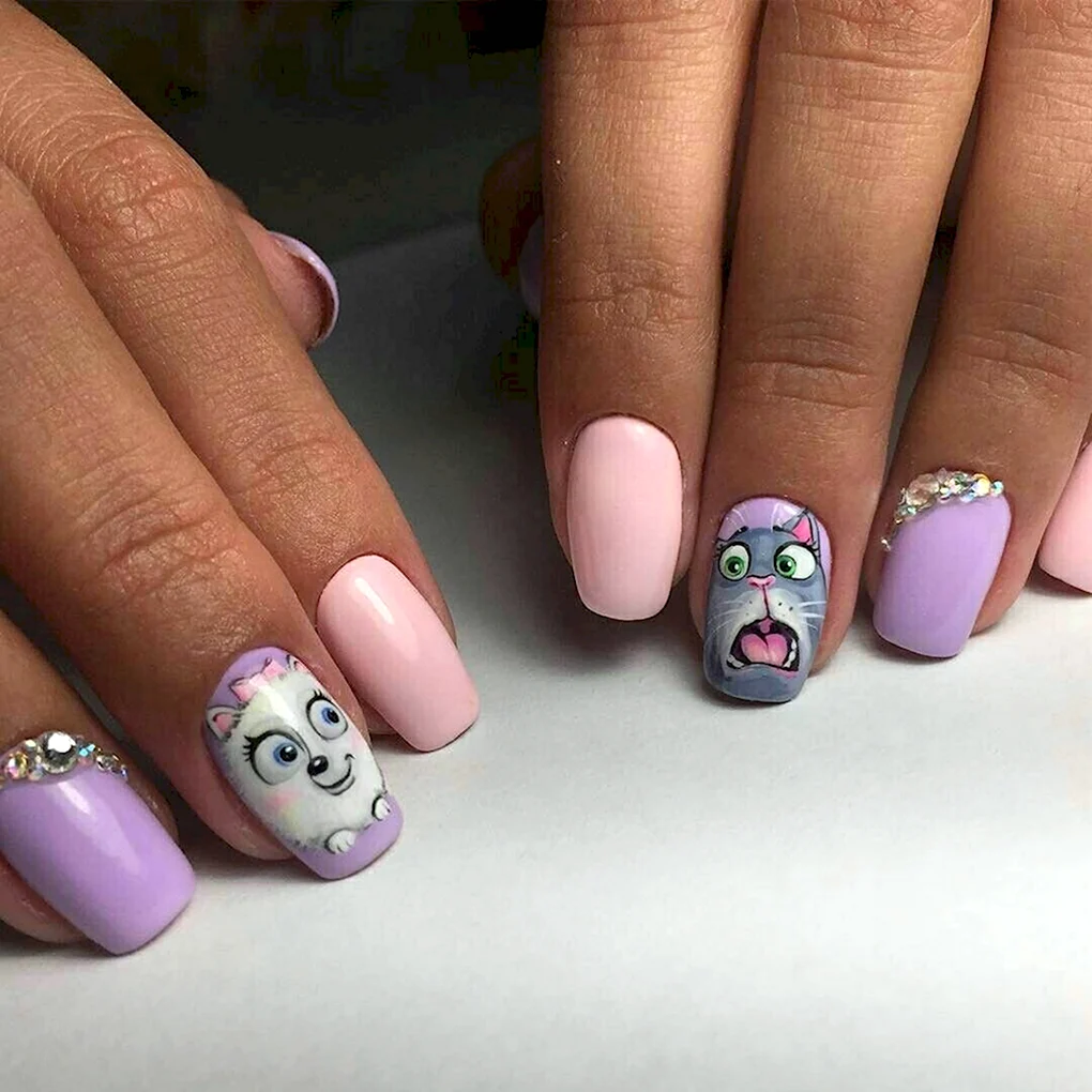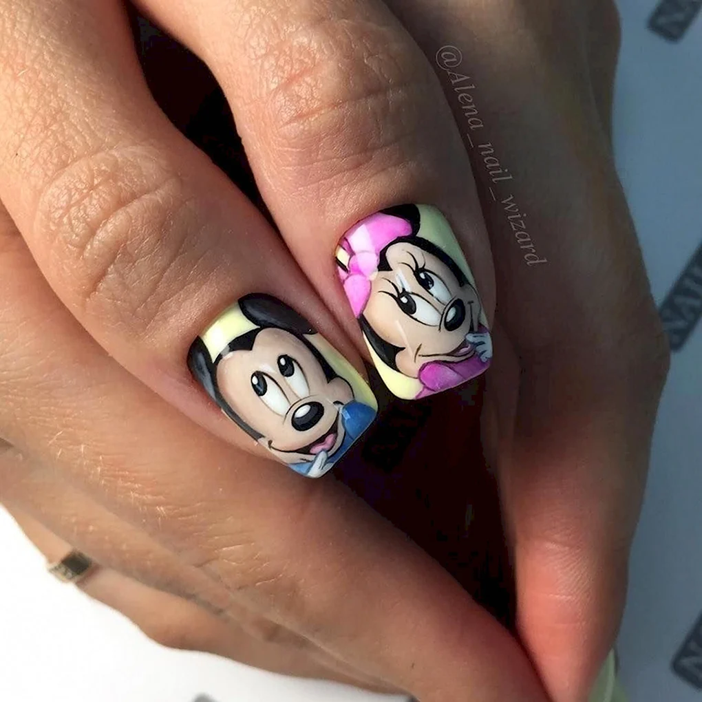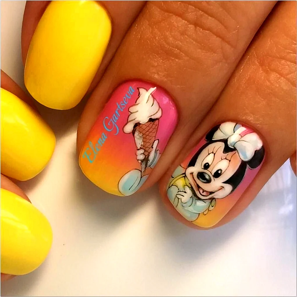Маникюр с мультяшками Маникюр с изображением популярных мультяшек - веселый и стильный способ украсить ногти. Познакомьтесь со всеми вариантами этой темы и скачайте фото и картинки для вдохновения и самостоятельного создания.