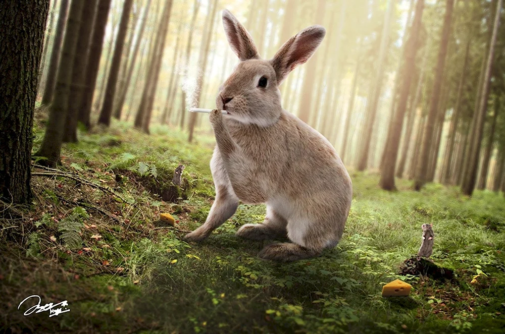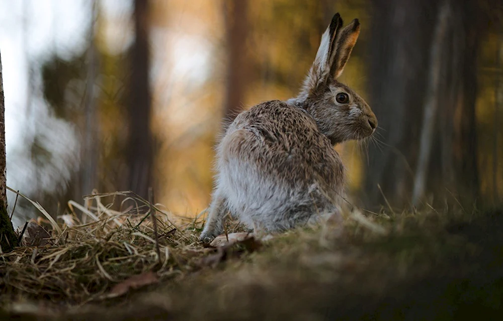 Заяц в осеннем лесу Забавные и плутовские зайцы, словно живые, запрыгнули на фотографии с осенним лесом, они радостно позируют на заднем плане деревьев и листочков. Эти картины наполняют дни осени веселым настроением и радует глаз своей яркостью и неповторимостью!